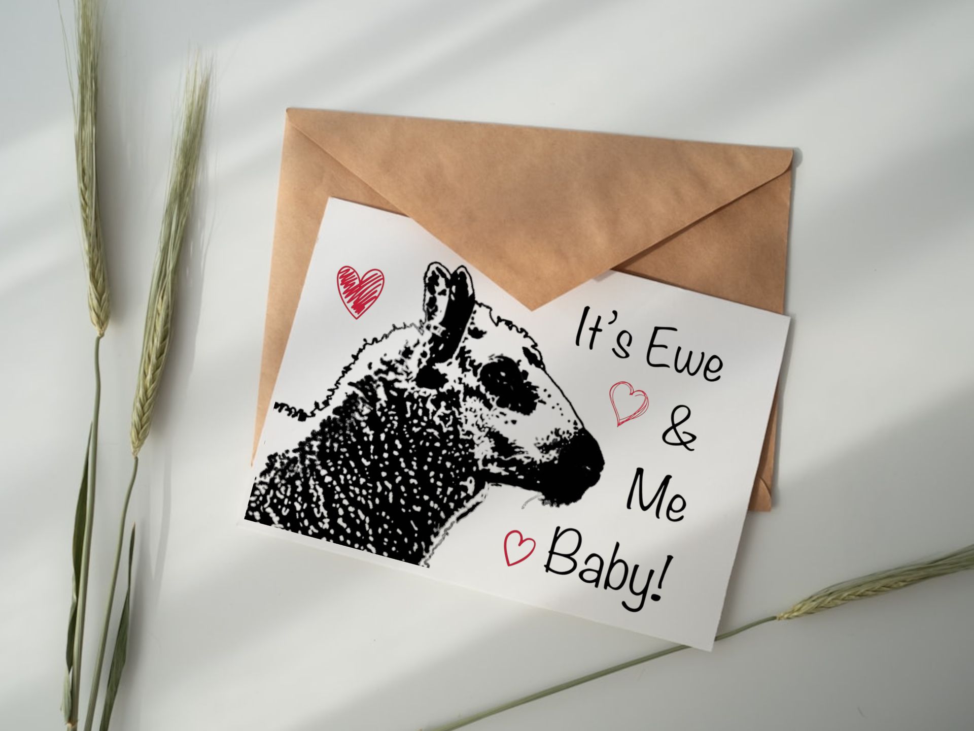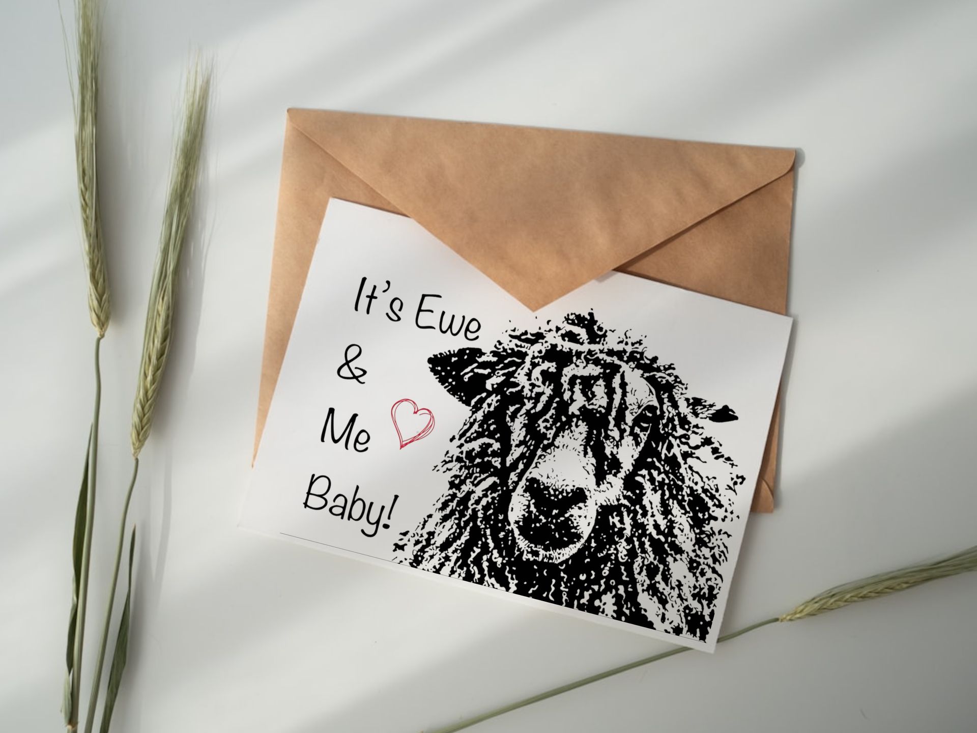 "It's Ewe & Me Baby", wooly sheep greeting card