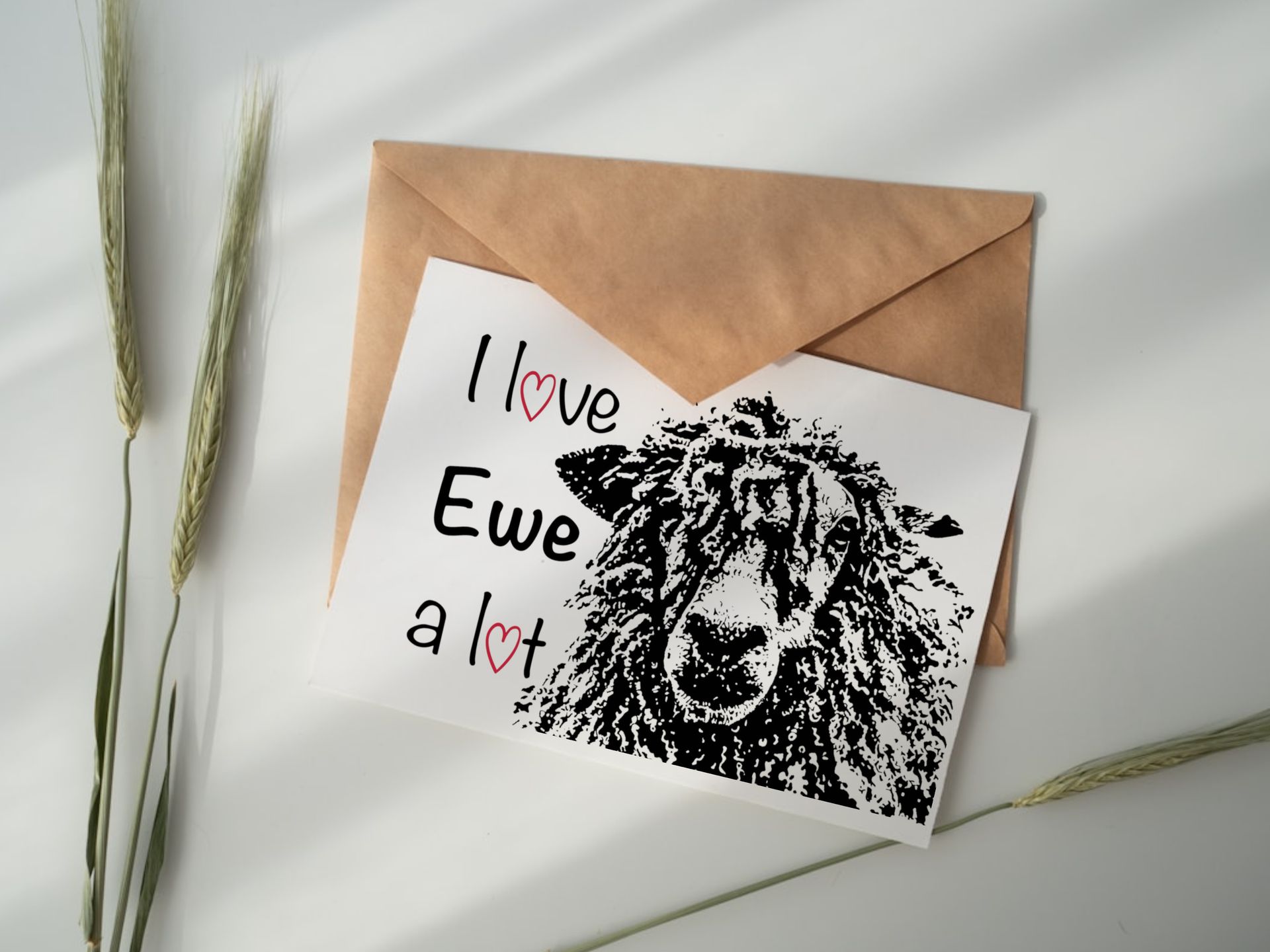 Valentine's Gift Box Set with "I Love Ewe a lot", Wooly sheep greeting card